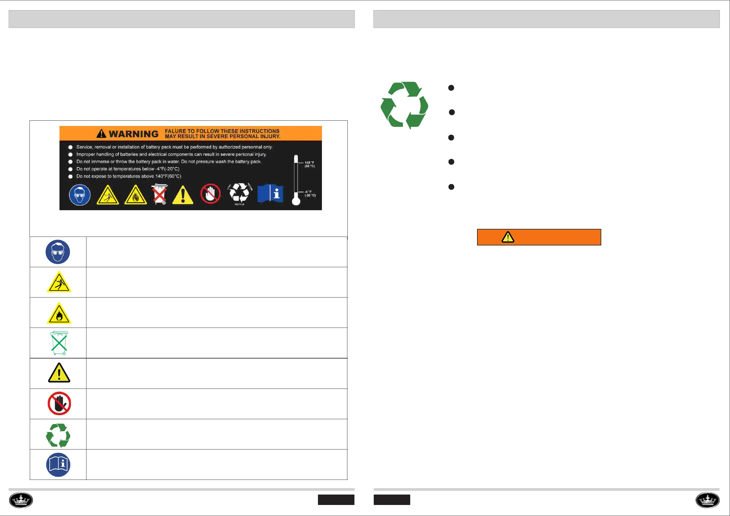 Safety and warning labels are on the lithium battery for your protection. Read and comply with