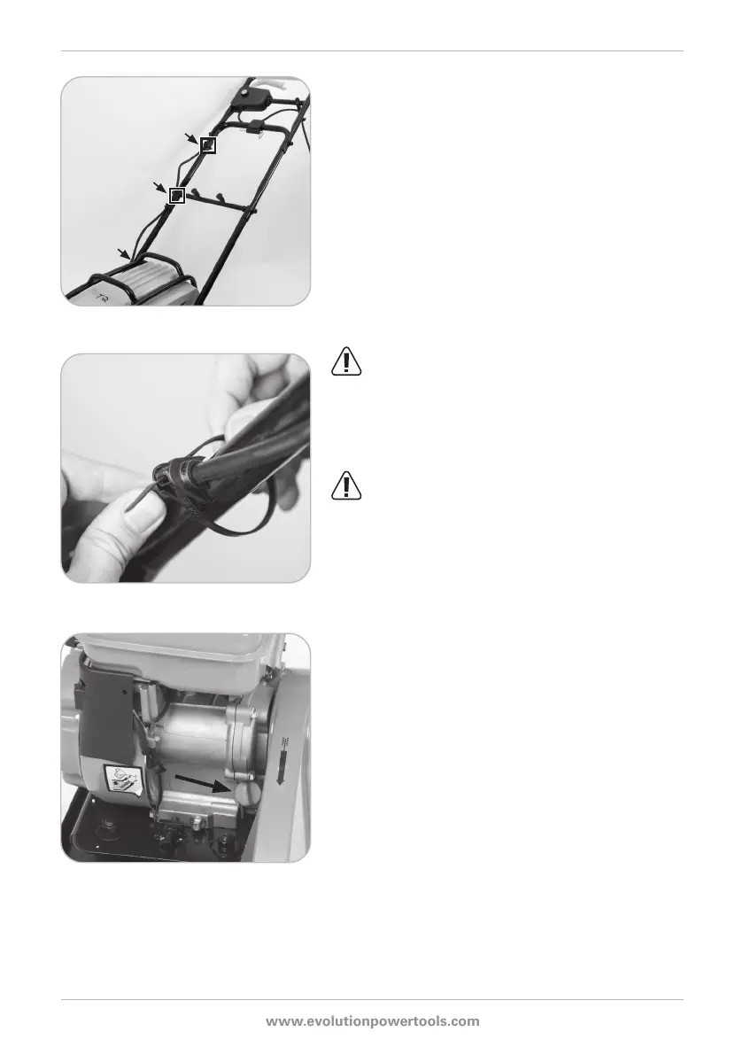 route the power cable up the handle frame. These