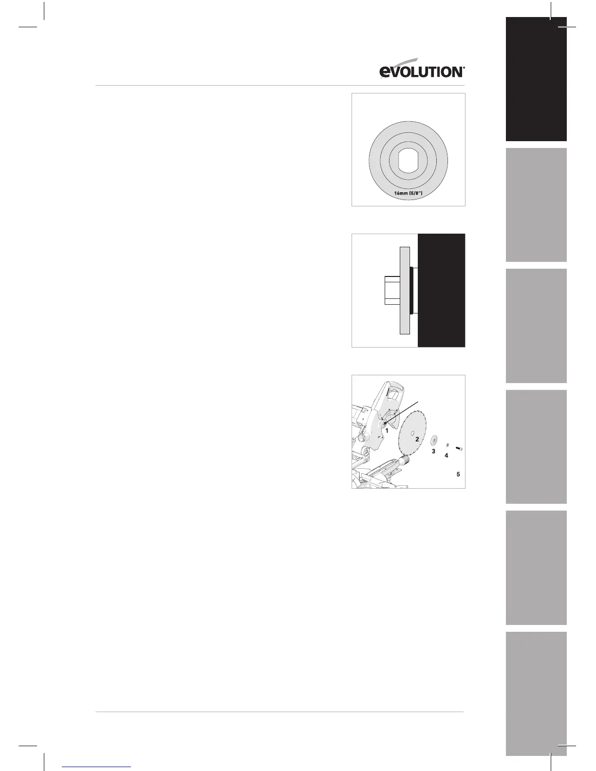 safely fit saw blades with a 16mm (5/8”) arbor as available in