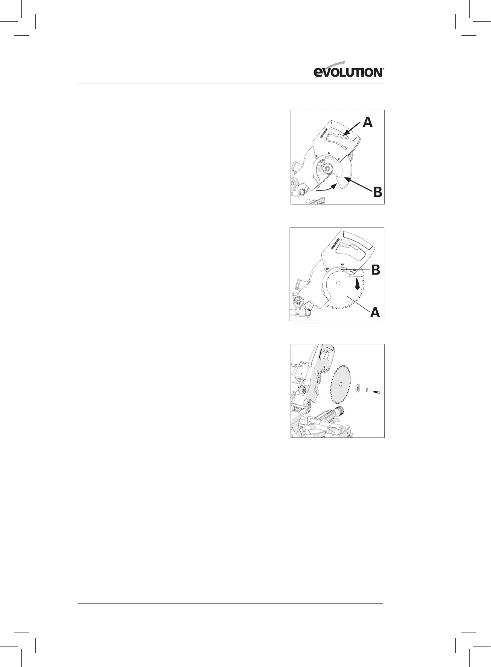 Sicherstellen, dass der Drehrichtungspfeil auf dem Sägeblatt (A)