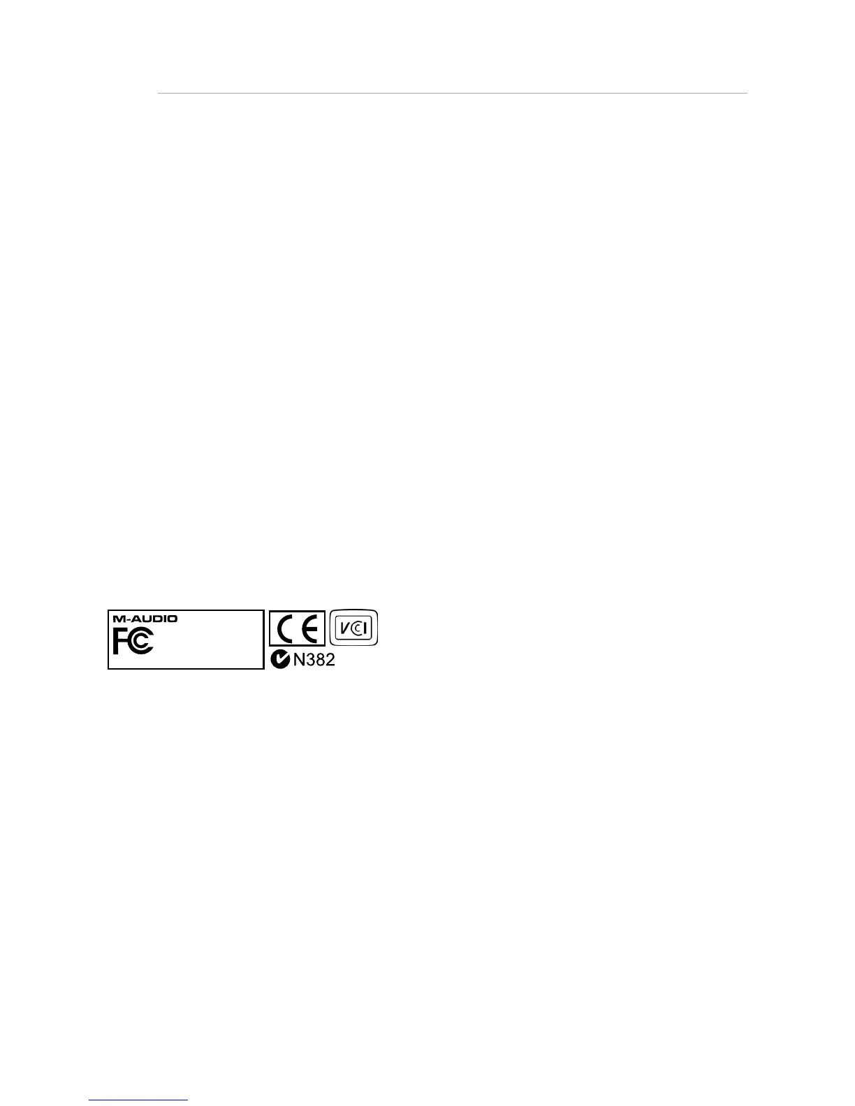 Note: Your M-Audio product has been tested to comply with FCC Standards FOR HOME OR OFFICE USE. Modifications not authorized by the