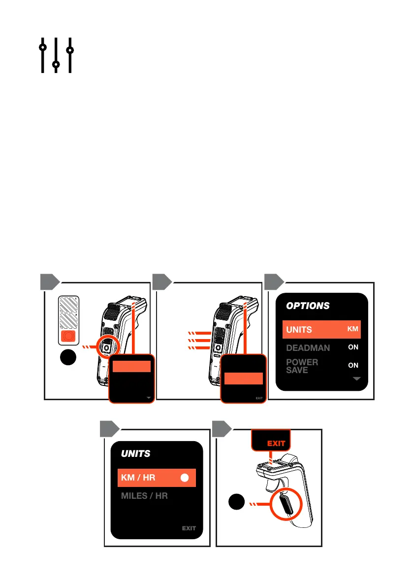 your region (kph or mph). Press the ON/OFF button to conrm selection.