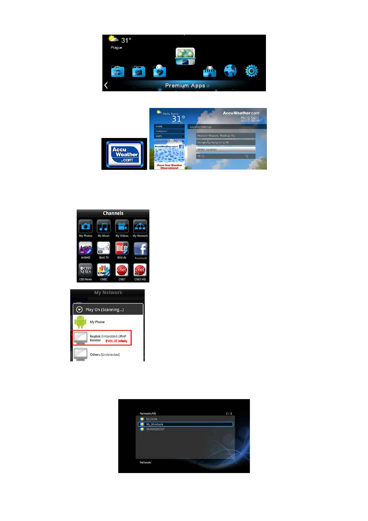 které se nachází EVOLVE Infinity. K dispozici je několik DMC aplikací, například iMediaShare (www.imediashare.tv).