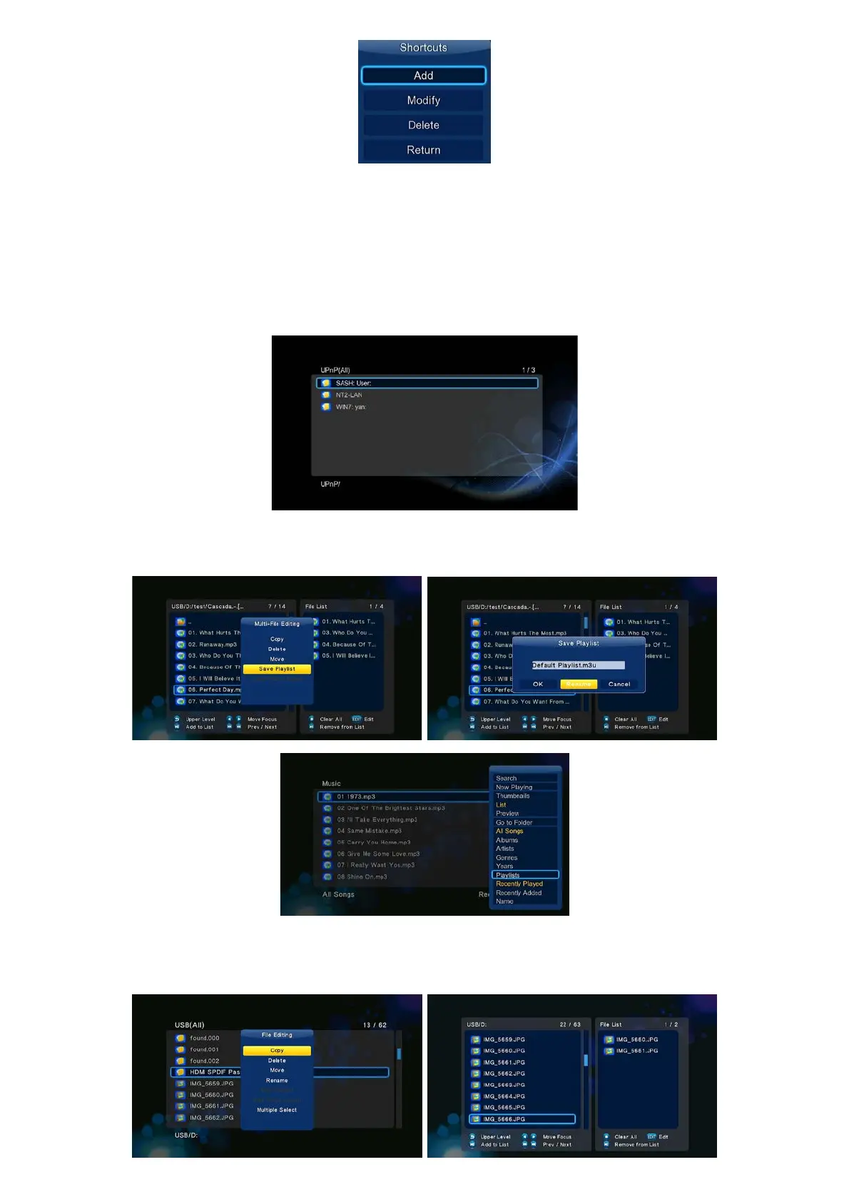 Krok 2, Otevřete v EVOLVE Infinity menu Správce souborů UPnP a zvolte UPnP server. Nyní můžete procházet knihovnu médií sdílenou UPnP