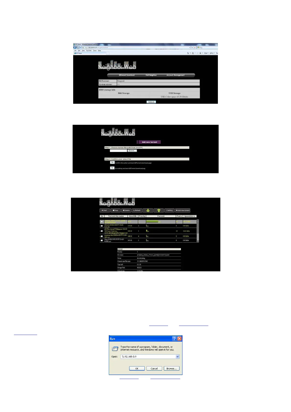 Stránka stahování BitTorrentů vám umožní spustit, zastavit nebo smazat torrenty a nastavit jejich prioritu. Umožňuje zobrazit i status probíhajících