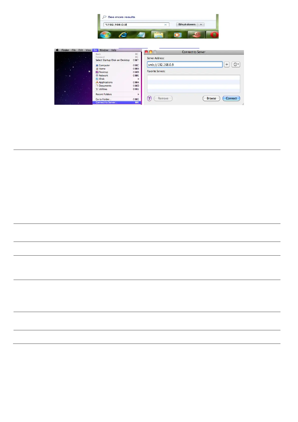 jděte na Vyhledávač Přejít Připojit k serveru zapište smb://IP adresa nebo smb://název hostitele a klikněte na Připojit.