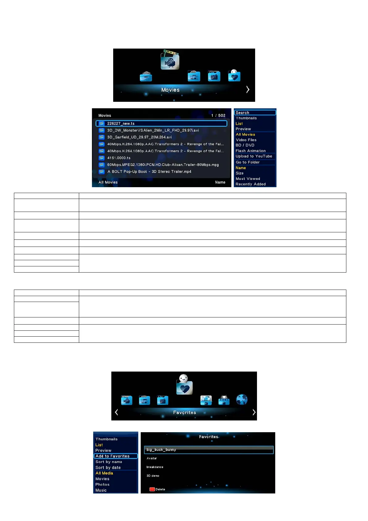 Pre zobrazenie menu možností v knižnici médií stlačte tlačidlo MENU. Získate prístup k nasledujúcim funkciám.
