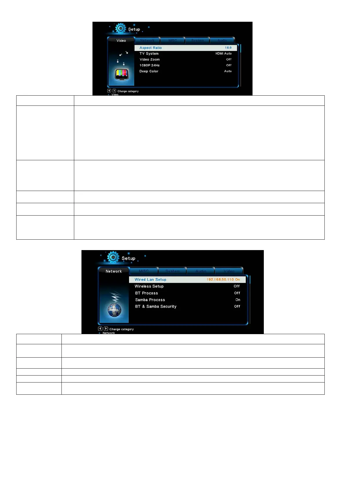 Przy pomocy tej opcji można ustawić normę TV i wyjściową rozdzielczość obrazu.