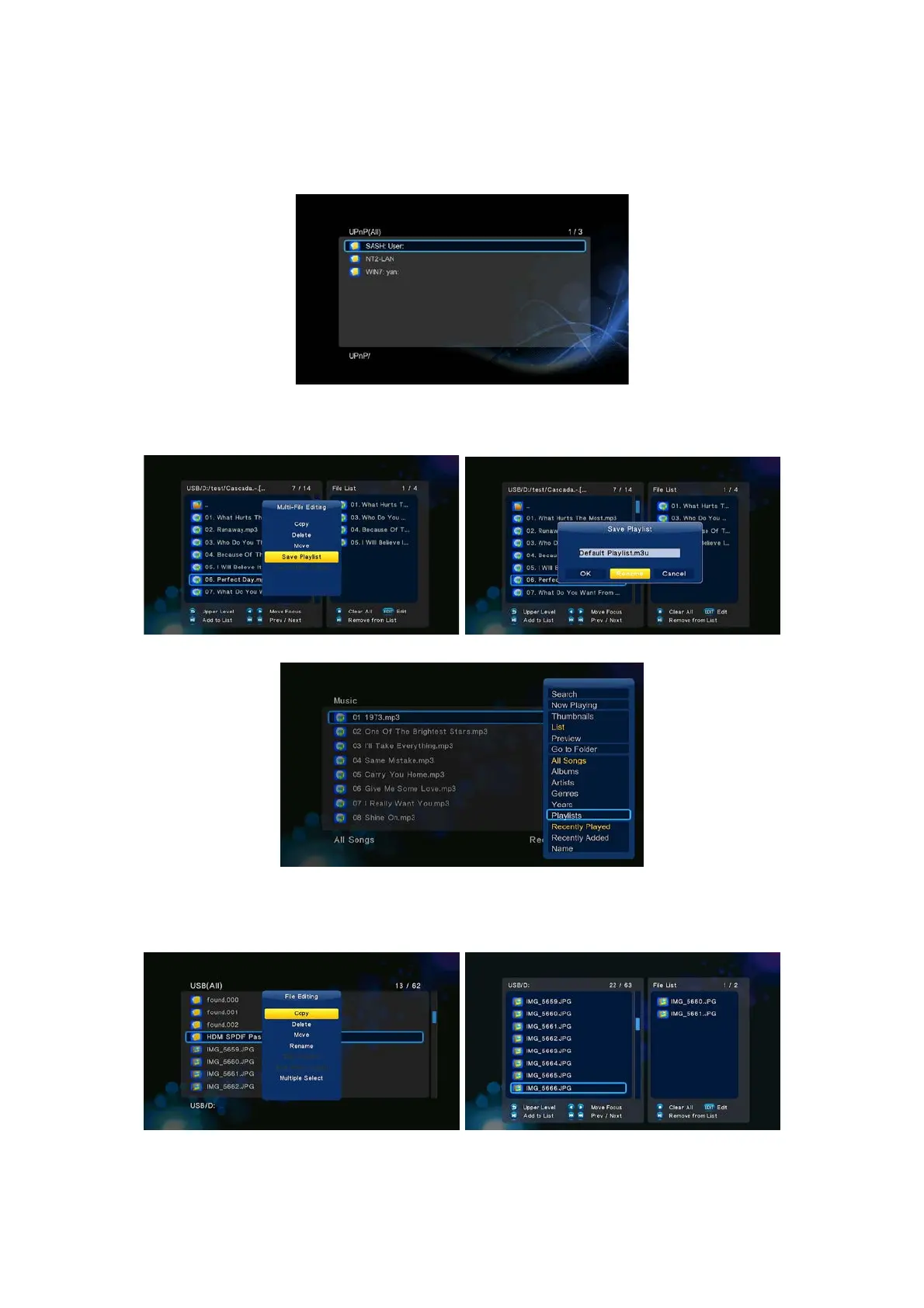 2. lépés, Válassza a Másolás pontot, amivel bejut a Fájlkezelő menübe. A képernyőn megjelenő utasításokat alapján hozzon létre egy lejátszási listát