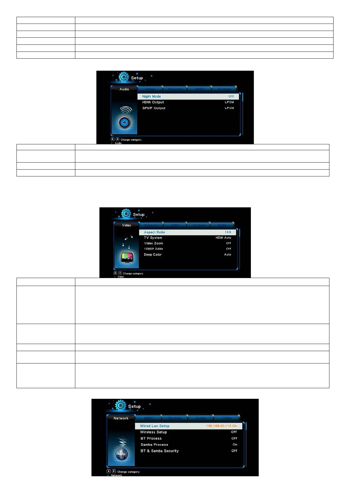 - Select to adjust TV Type and video output resolution. This setting depends on your regional location. Include: