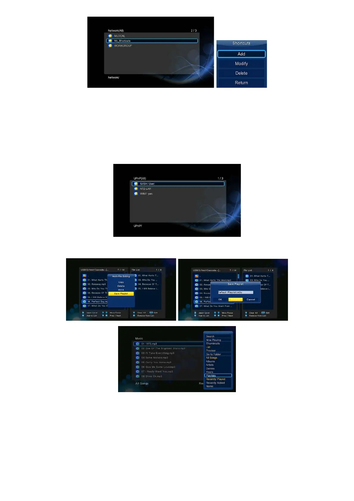 A built-in UPnP (Universal Plug and Play) client has been integrated on the system, which enables the player to auto-detect UPnP Media Servers on the