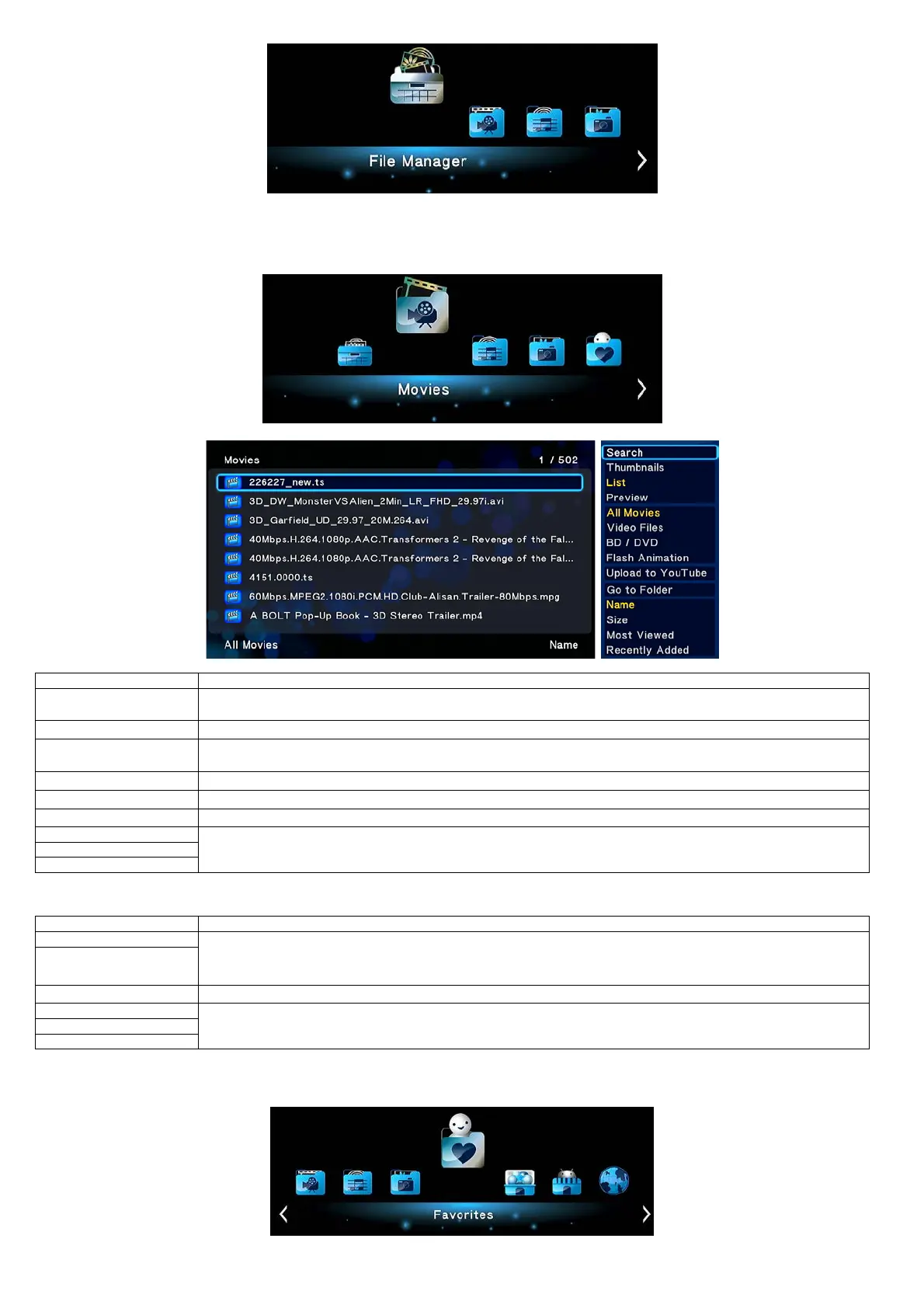 v katalogu oblíbených položek fungují jako zkratky k vybraným složkám na místním disku, vloženém USB disku, sdíleném síťovém úložišti Samba, atd.