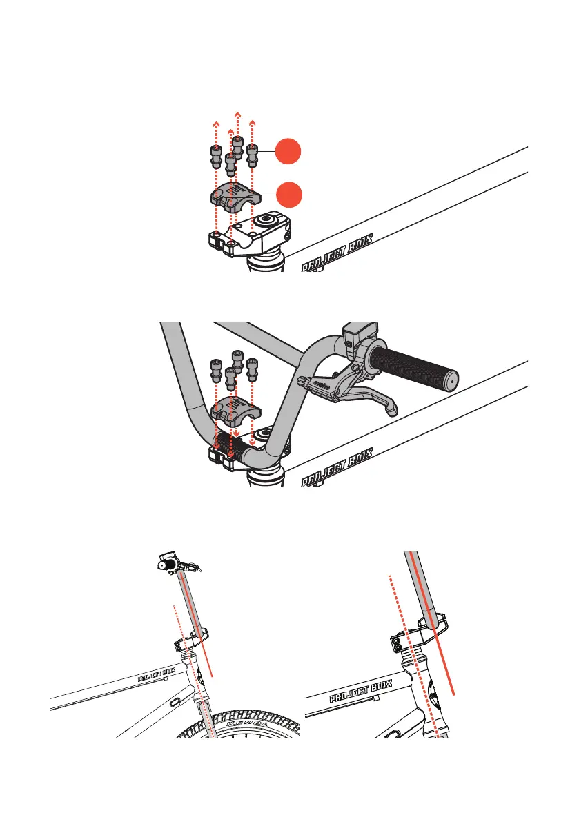 4. Lift the handle bars in place and loosely assemble the Stem Bolts and