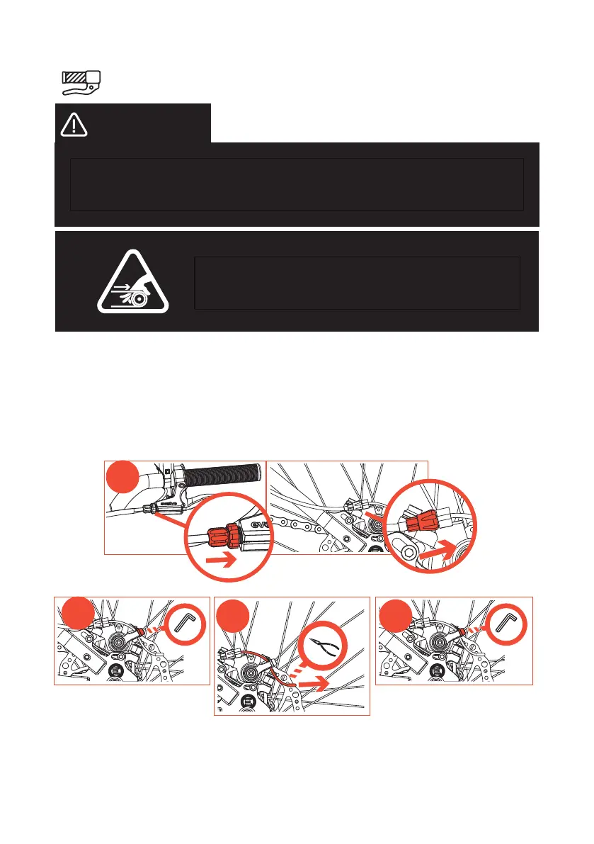 Turn the barrel adjusters on the Brake Lever and Caliper all the way in (1).
