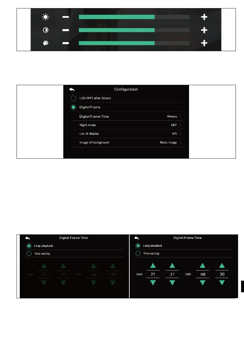- Digitális képidő: Beállíthatja a képkeret funkció használatának idejét.