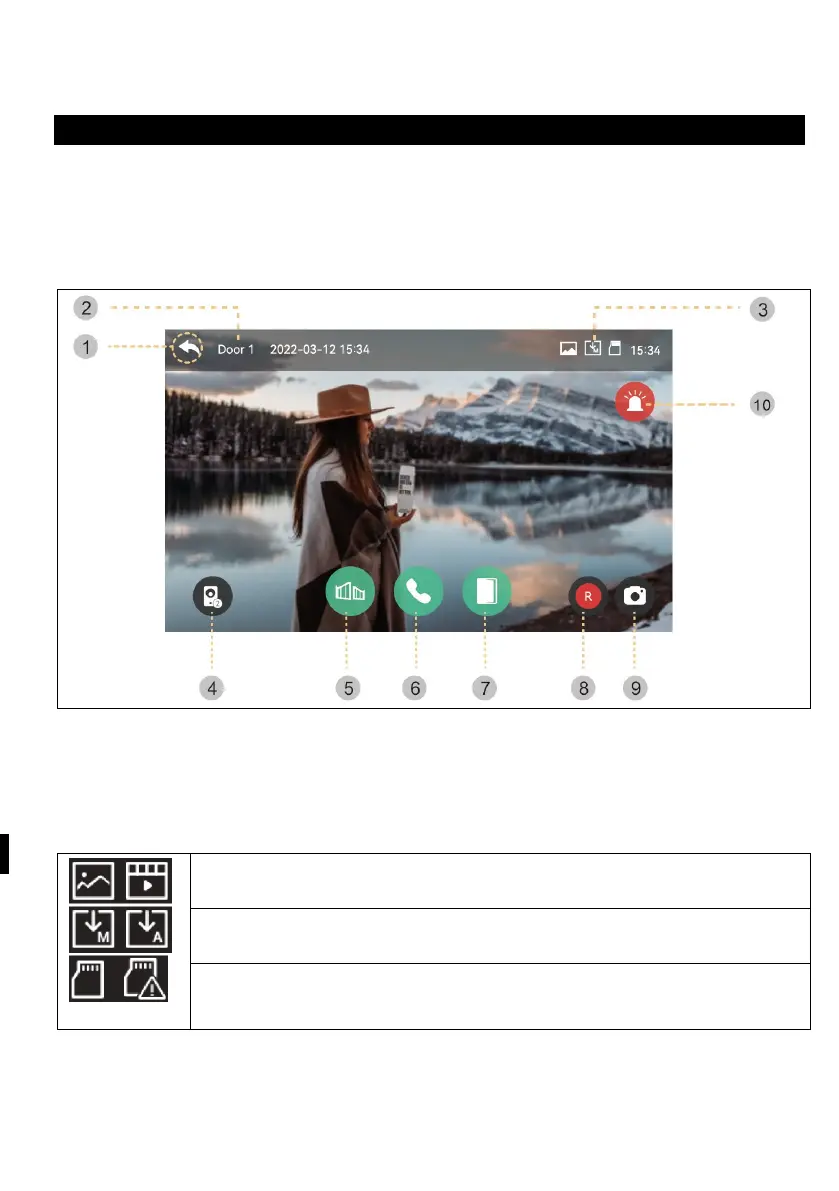 Při volání z dveřní kamery nebo po stisknutí tlačítka "Monitor" se zobrazí následující