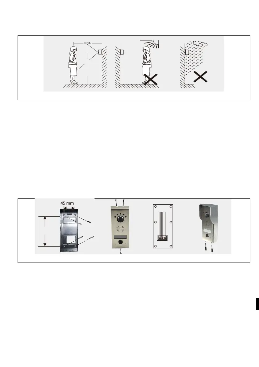 1) Szerelje a készüléket a földtől 1,4 m - 1,7 m magasságban (a kamera hatásától