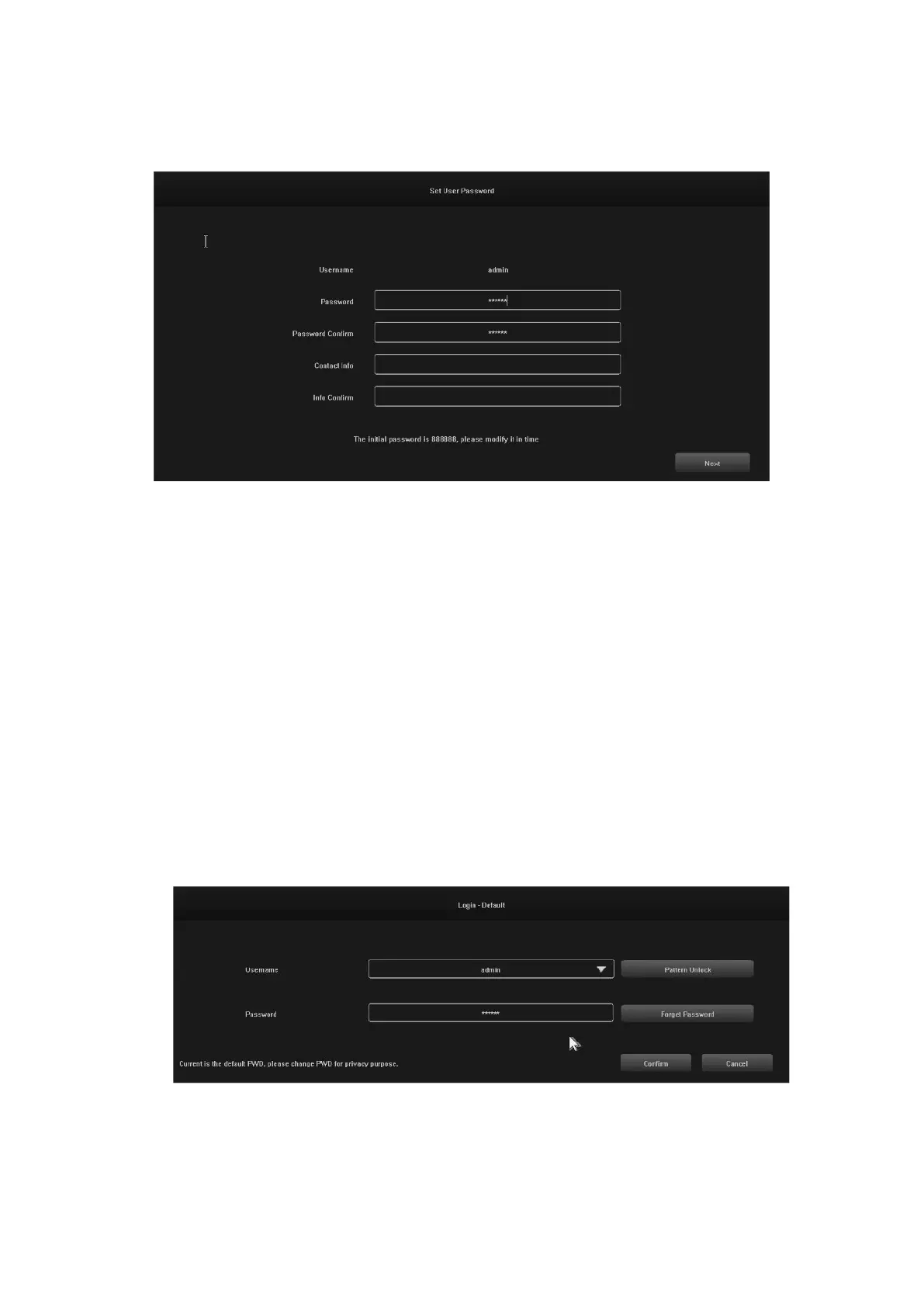 When the system is turned on, the "Set User Password" interface will automatically appear as shown below: