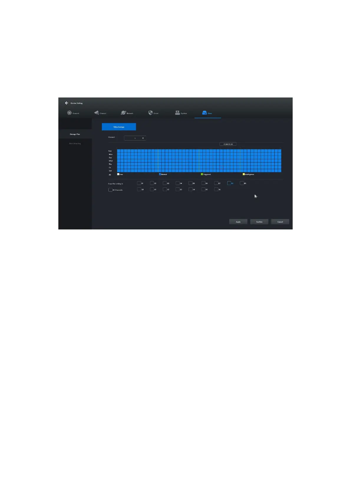 7.1 Kattintson a "Főmenü" -> " Tárolási beállítások" gombra, megnyílik a rögzítési beállítások felülete, az