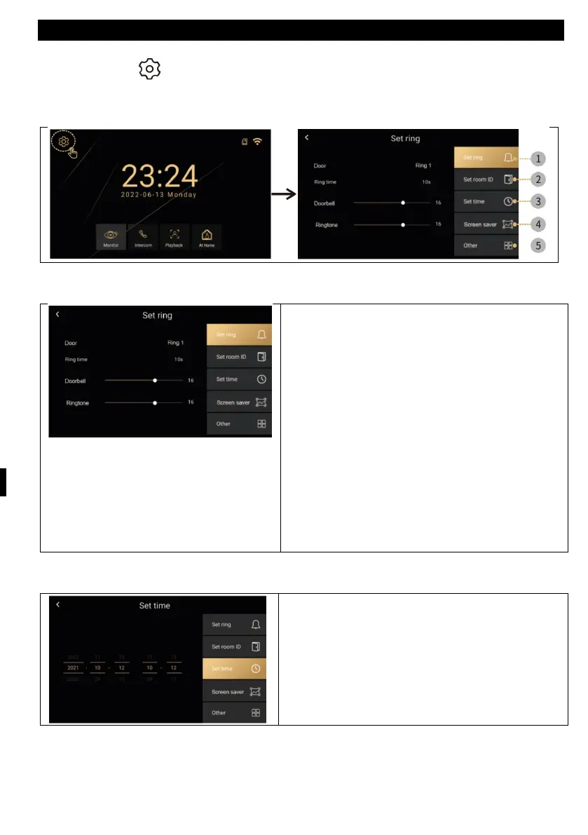 Nastavenie zvonenia, Nastavenie identifikátora miestnosti, Nastavenie času, Šetrič