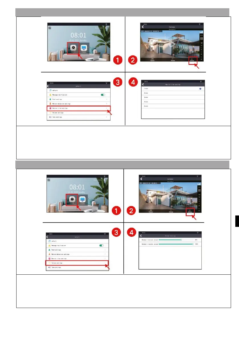 4) Állítsa be a kaputelefon hangerejét és a csengetés hangerejét szükség szerint.