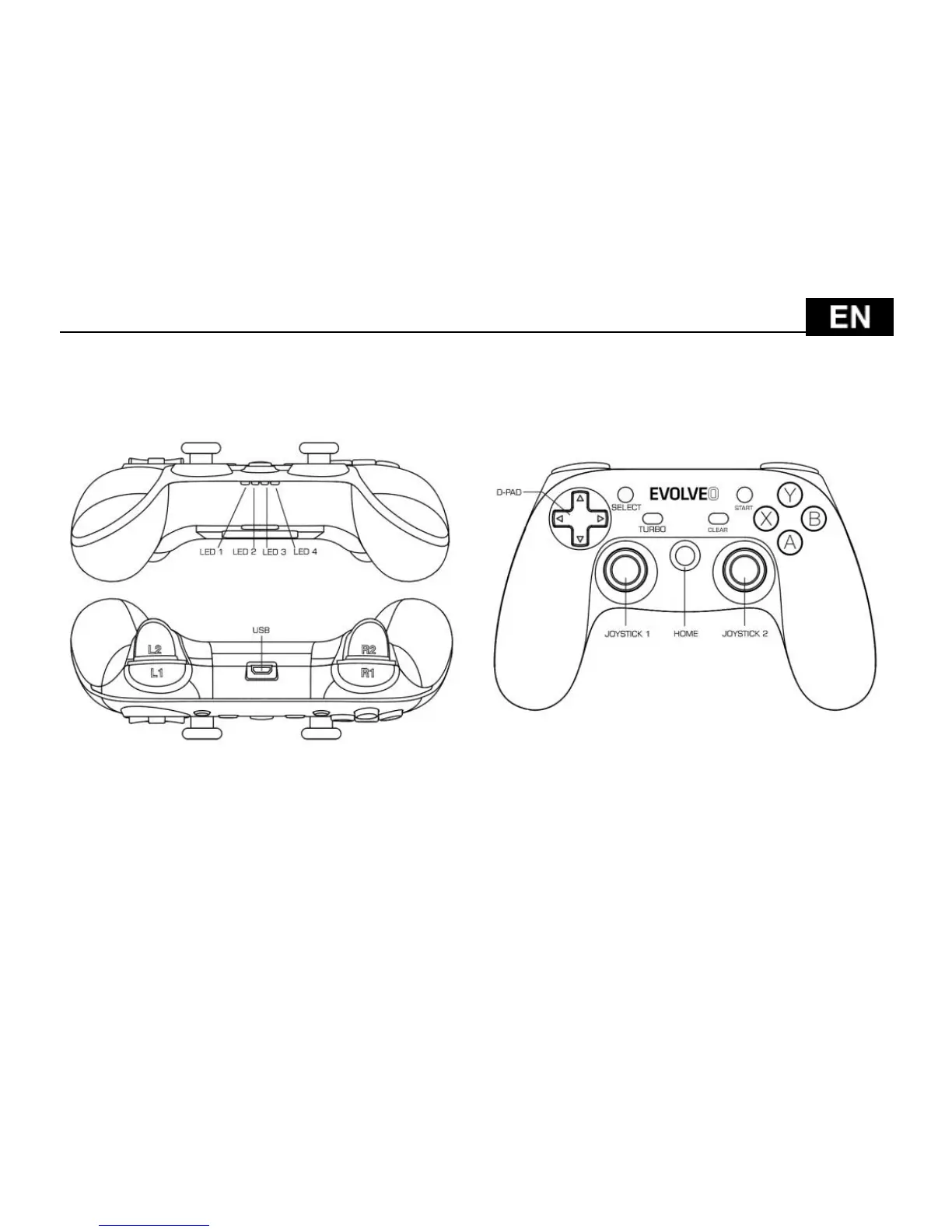 Evolveo FIGHTER F1 - Gamepad Operation; Powering On;Off & Battery Status