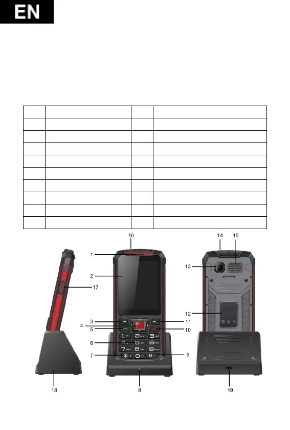 The following illustration shows details of the mobile phone.