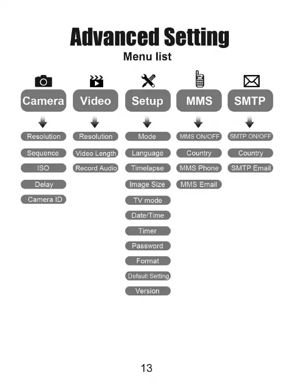 Evolveo StrongVision 2GB - Advanced Setting; Camera and Video Settings; System Setup and Network