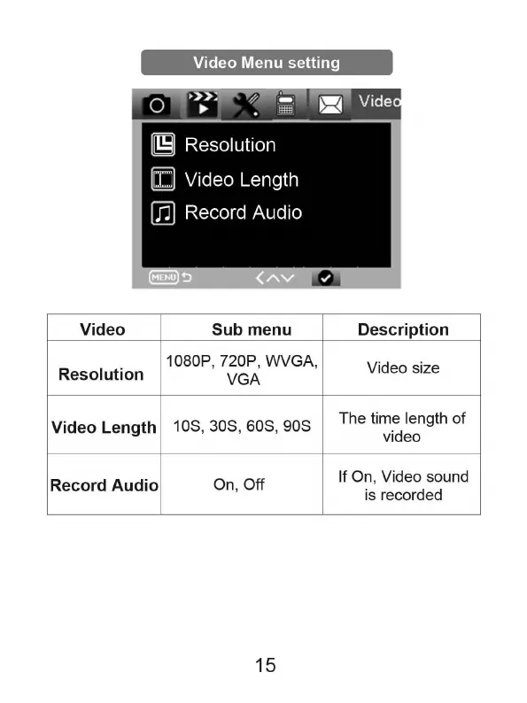 Evolveo StrongVision 2GB - Video Menu setting; Video Settings
