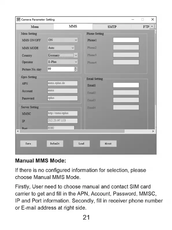Evolveo StrongVision 2GB - Camera Parameter Setting (MMS Auto); MMS Auto Mode Parameters