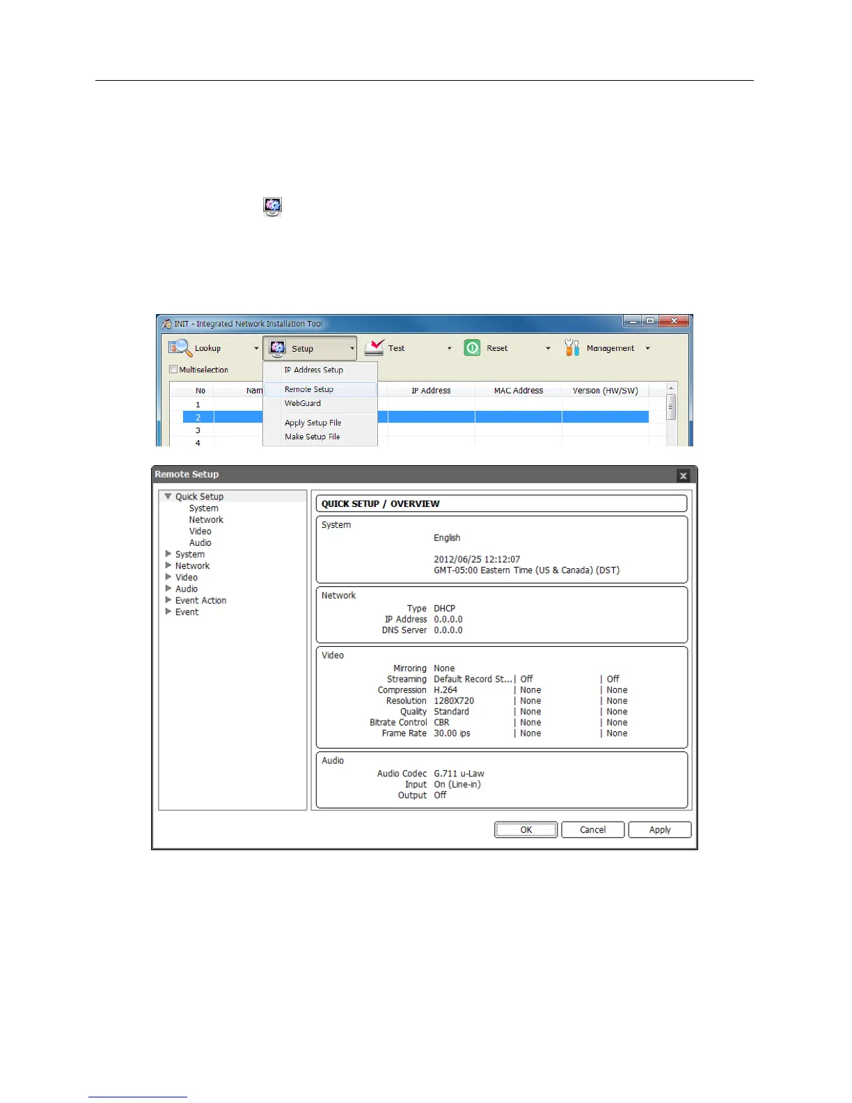 a camera, clicking the right mouse button and selecting Remote Setup on the Main screen.