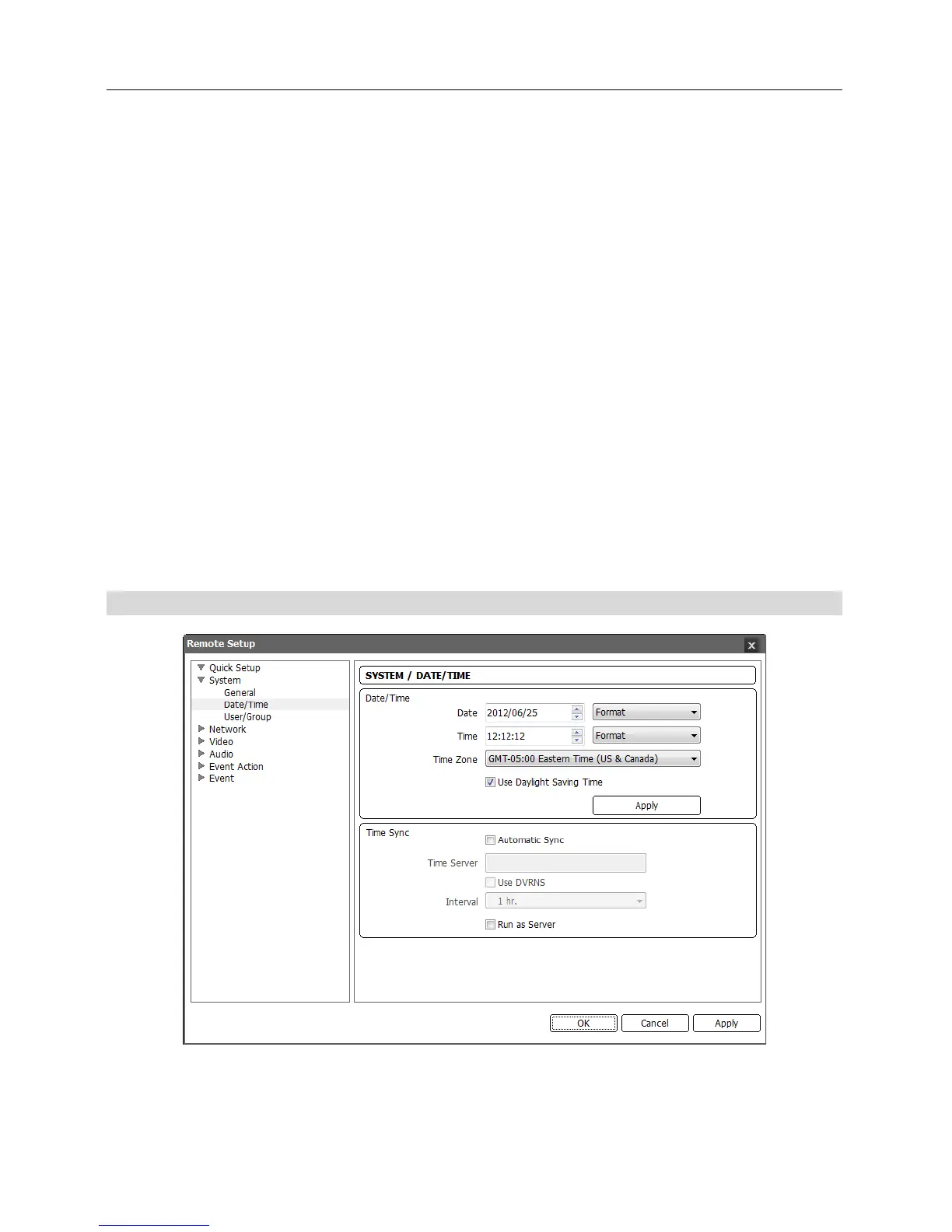 Date/Time: Change the system date/time, date/time format and time zone. Turn daylight-saving