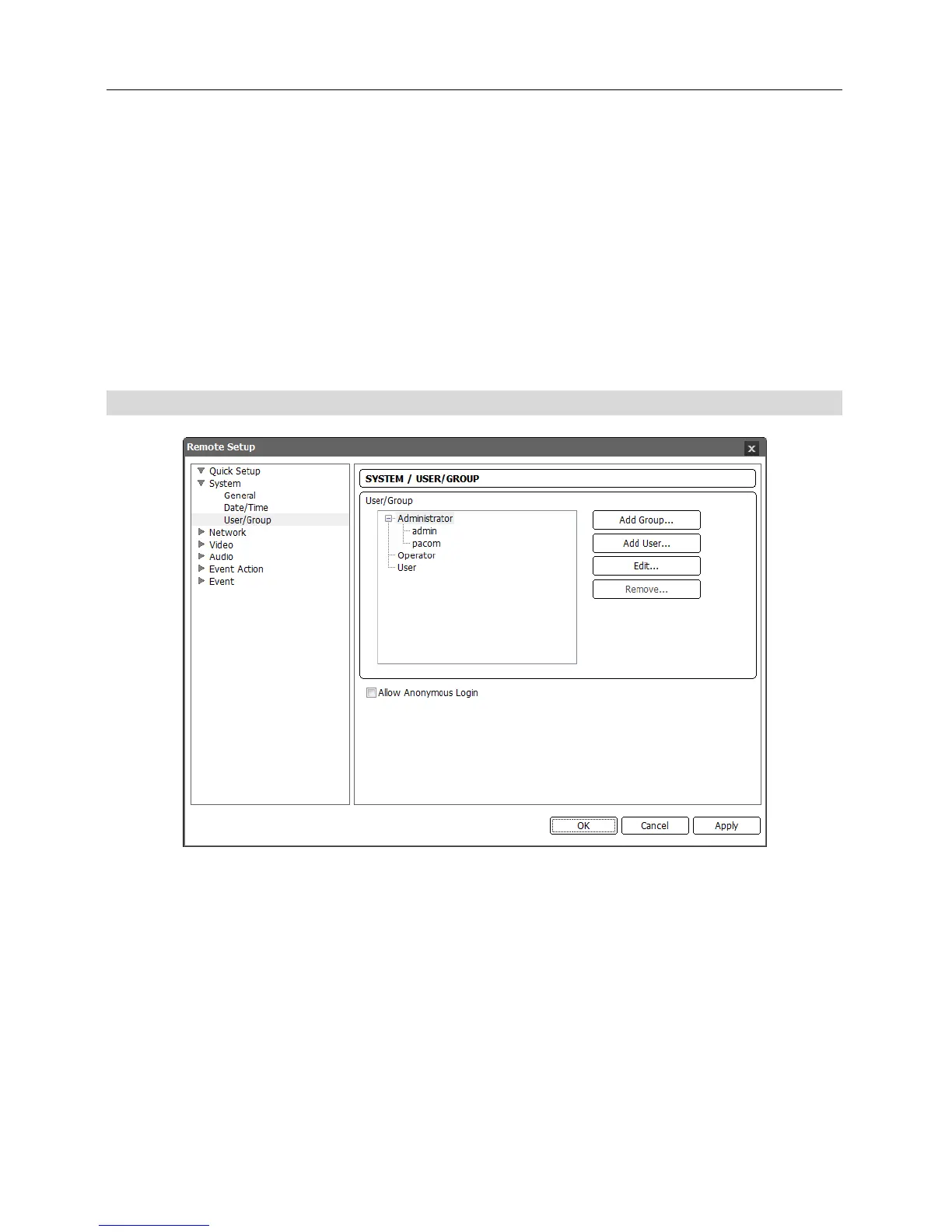 − Add User: Click to add a user. Enter the user name and select the group that the user will