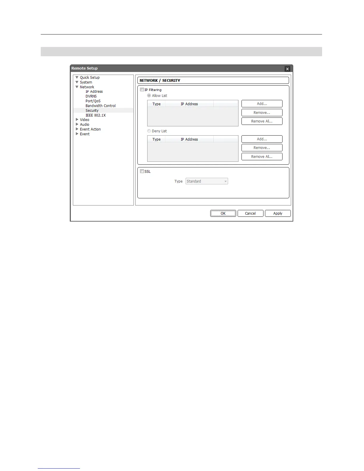 IP Filtering: Check the box to use the IP filtering function. You can allow or block connections