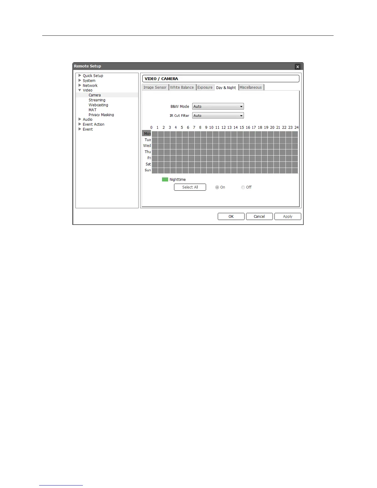 Day & Night: Click the tab to set up day & night settings (IR LED non-supported model only).