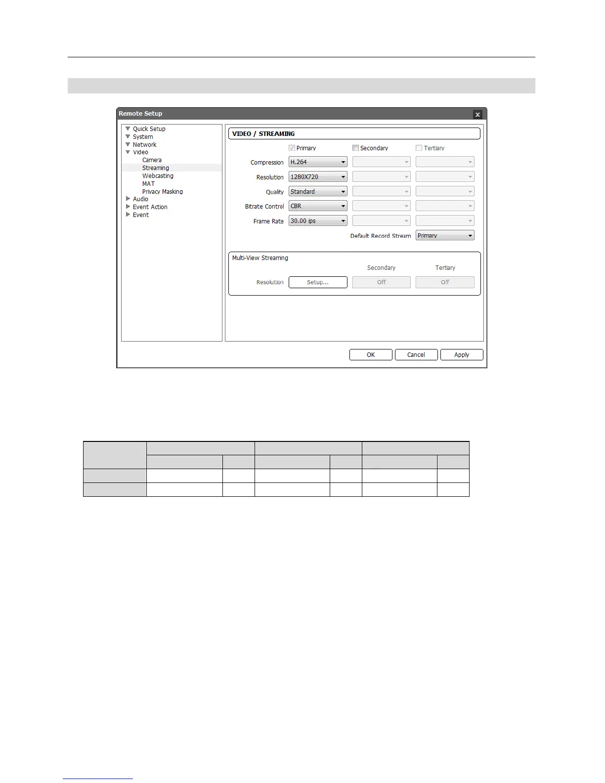 Primary, Secondary, Tertiary: The camera supports multistream video (priority: Primary >