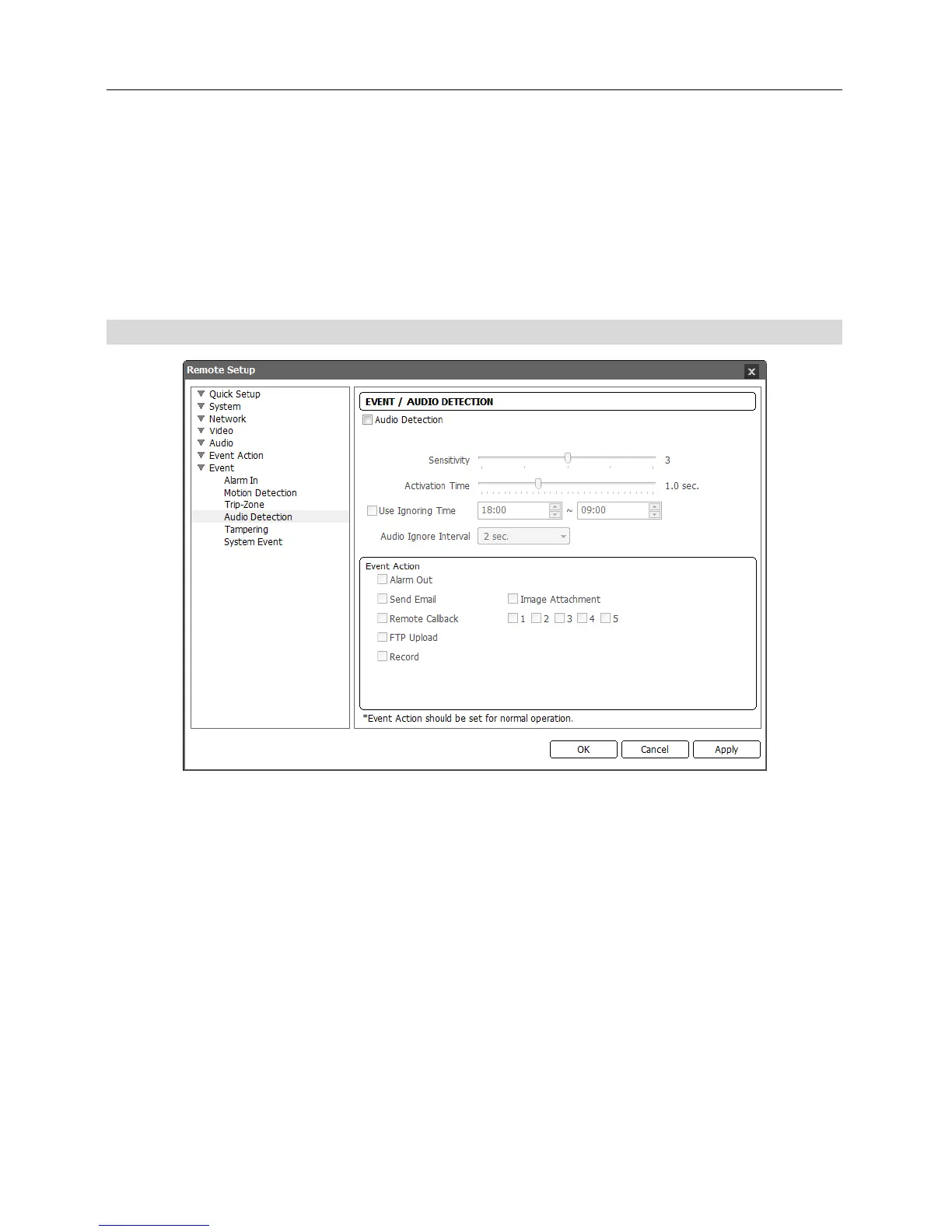 an audio is detected. You can control excessive event logging and remote notifications of audio