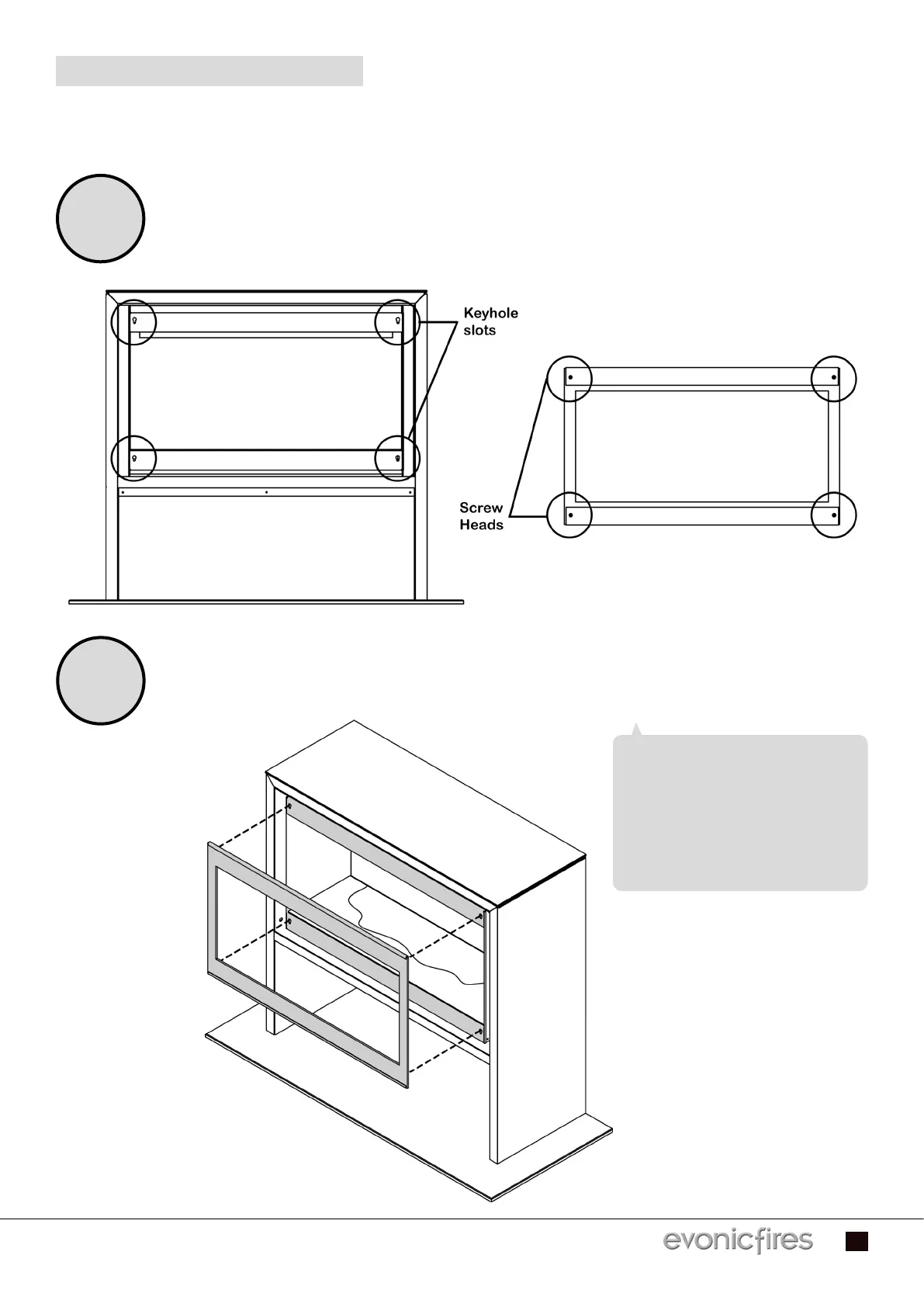 To install the front glass first locate the four keyhole slots on the front of the