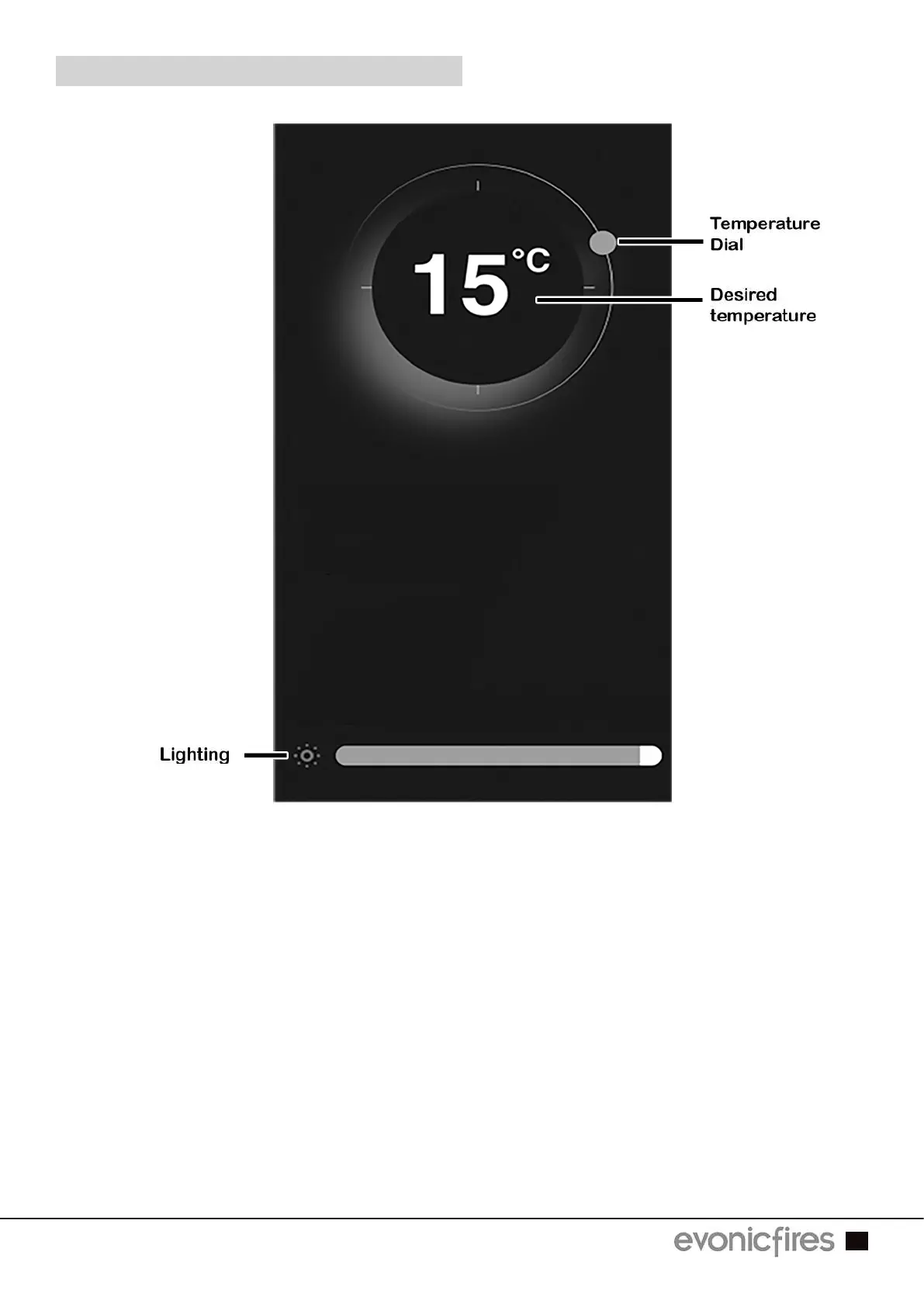 To adjust the desired temperature of your fire ensure that the heater is selected on the To adjust the desired temperature of your fire ensure that the heater is selected on the