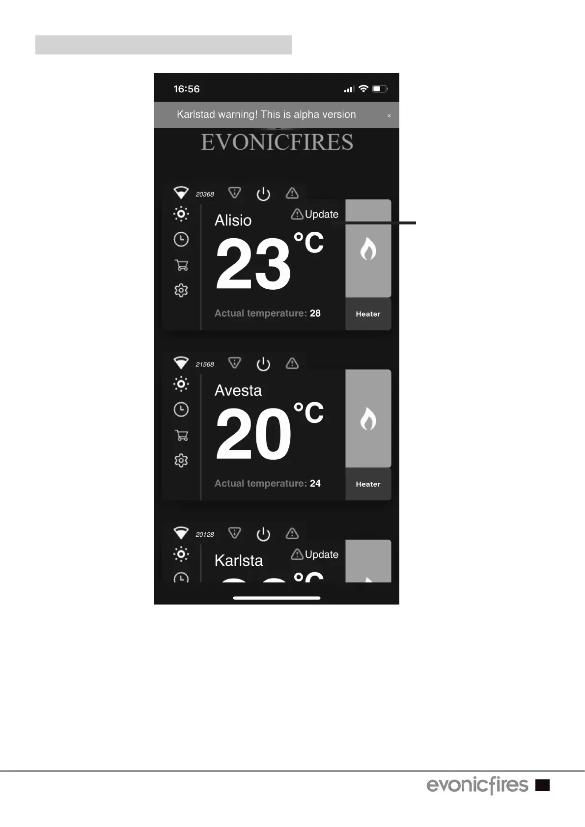 Evonic Fires EVOFLAME - Updating Your Fire; Initiate Fire Update; Update Process Notes