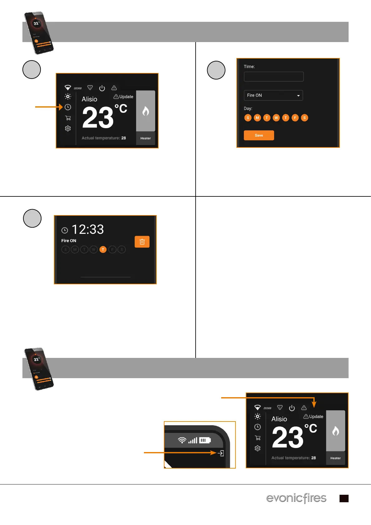 select the action (Fire On/Off/, Heater On/Off) select the action (Fire On/Off/, Heater On/Off)