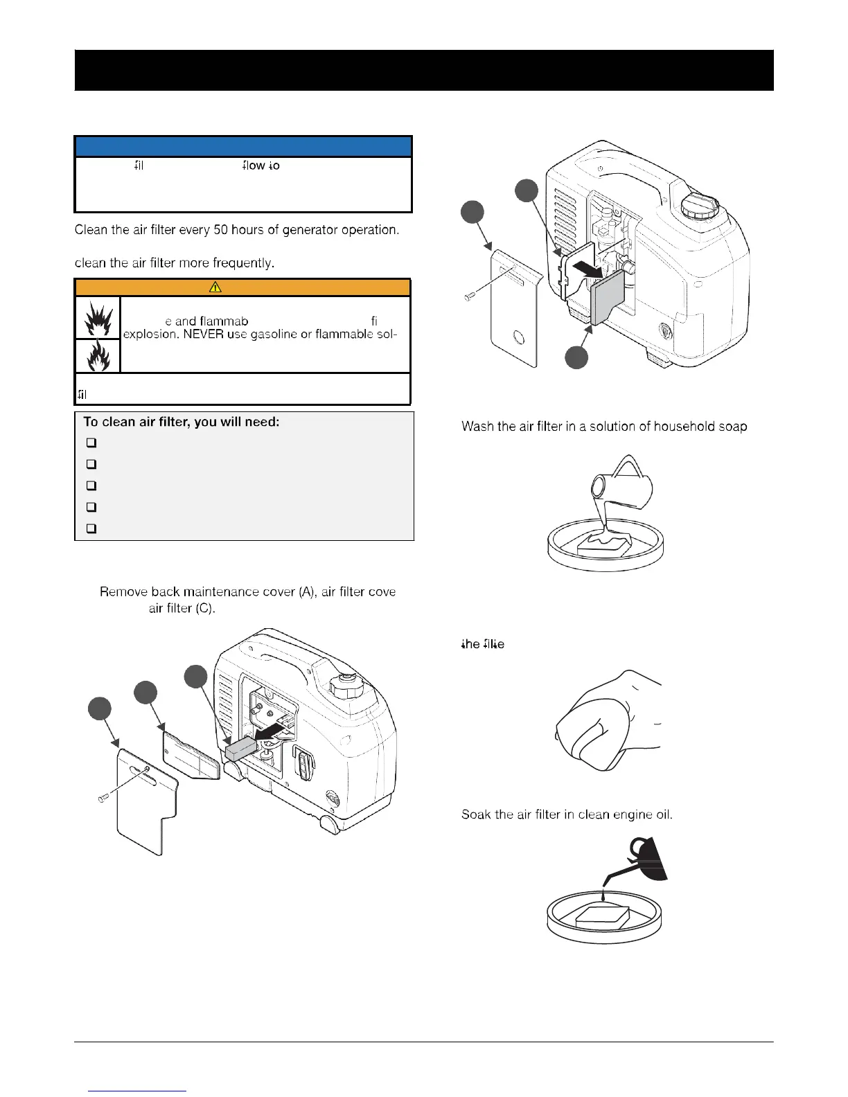 Never run the generator without the air cleaner assembly