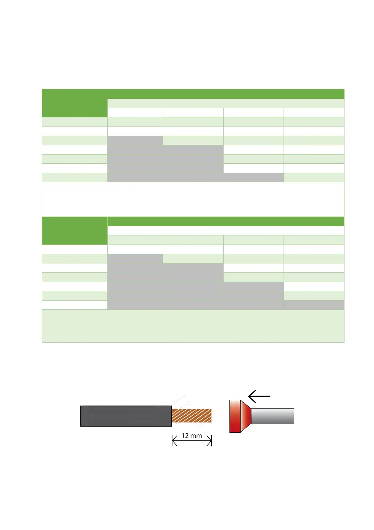 Note: Shaded areas indicate excessive voltage drop