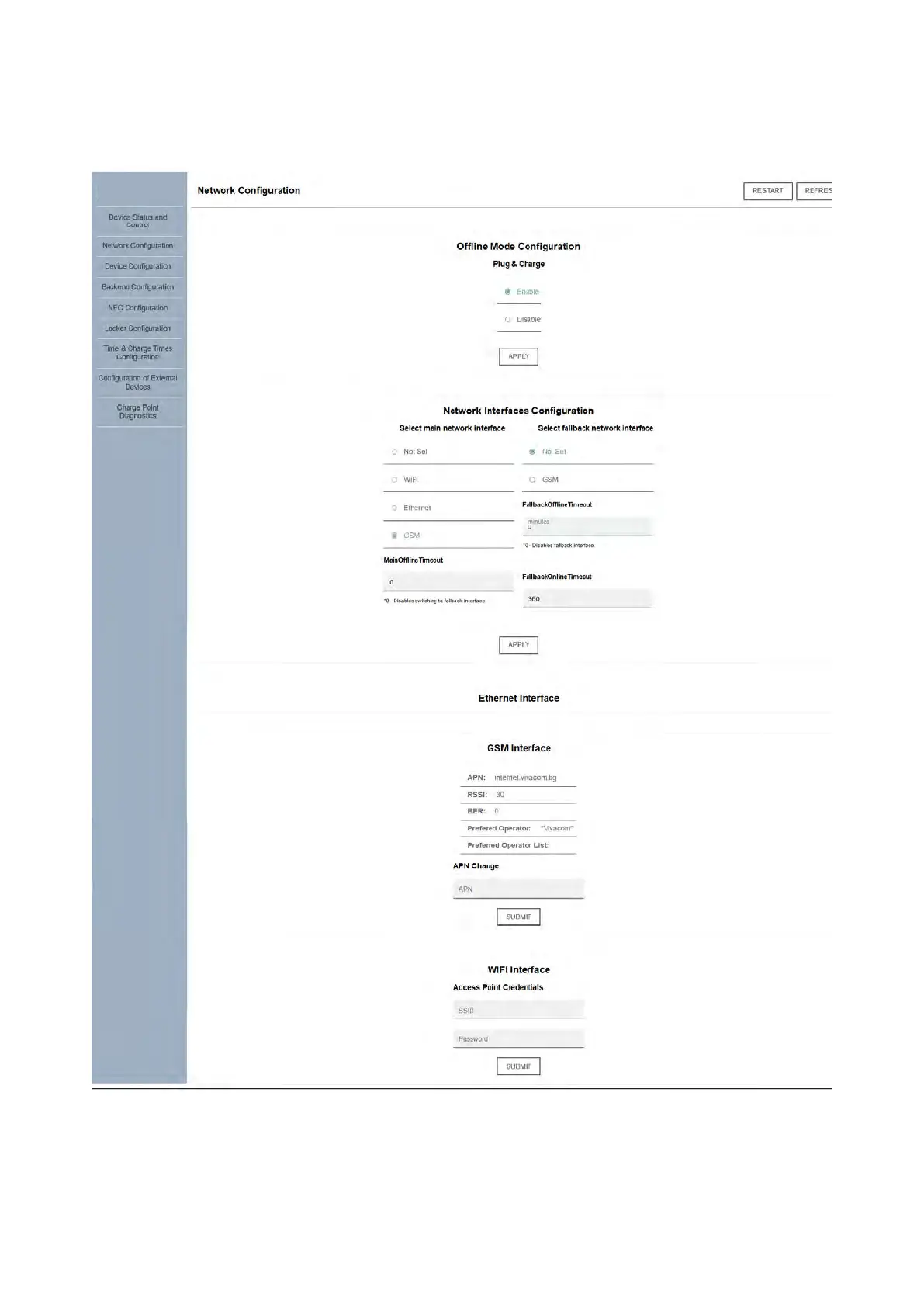 the charger, such as the internet network interface and possible fallback (secondary)