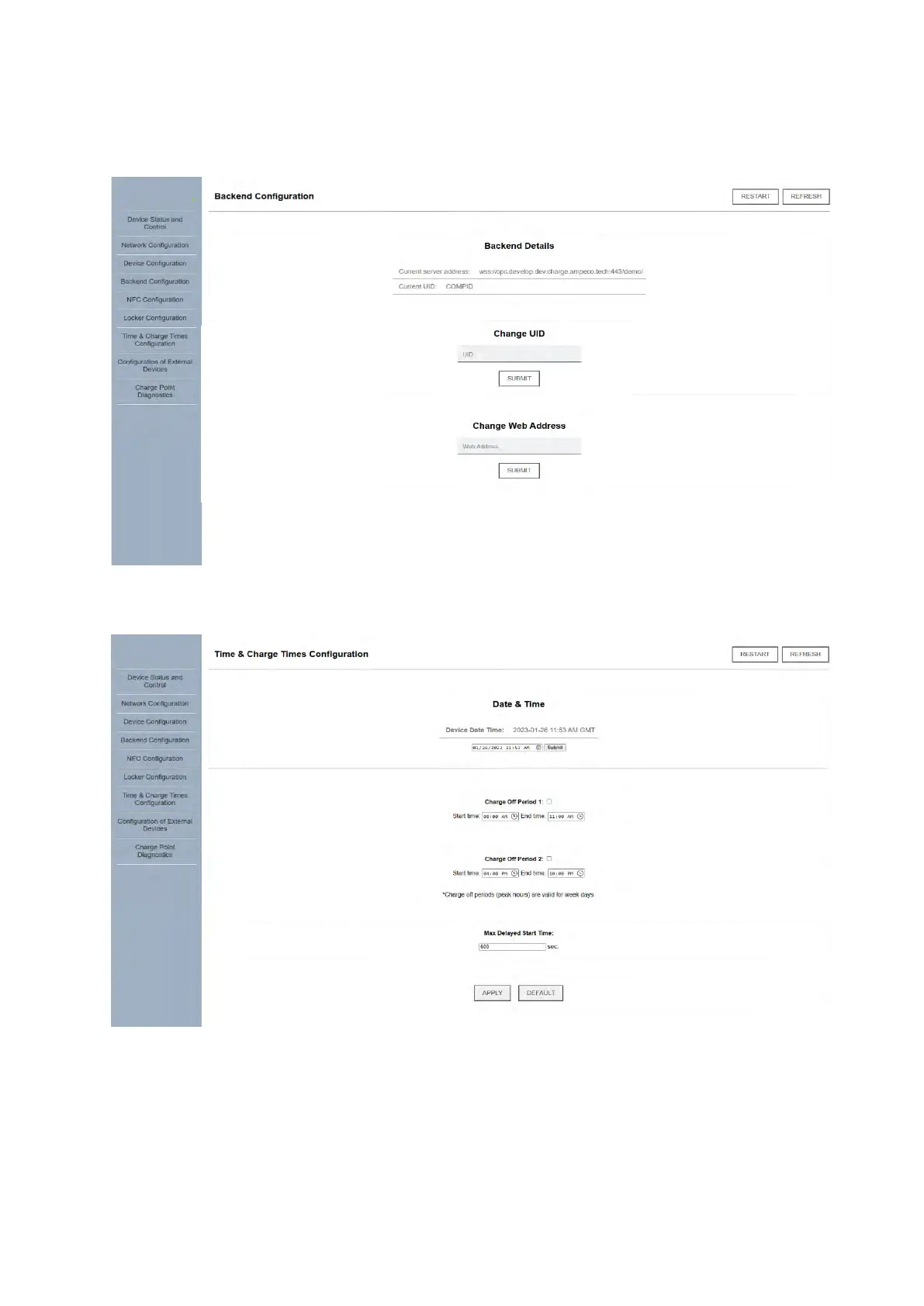 The charger comes with a preconfigured backend server address and UID, which can be