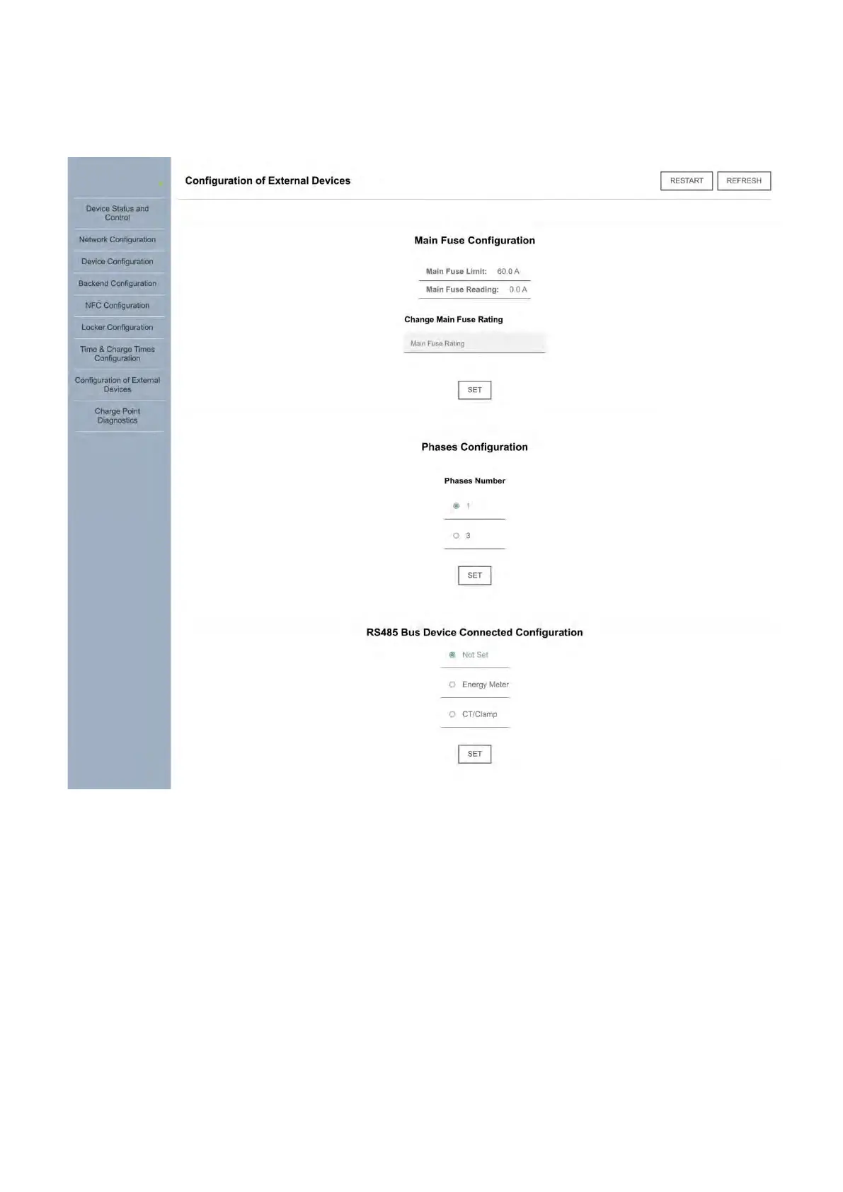 RS-485 bus. If it loses connection with the clamp, charging will be automatically limited to 6A.