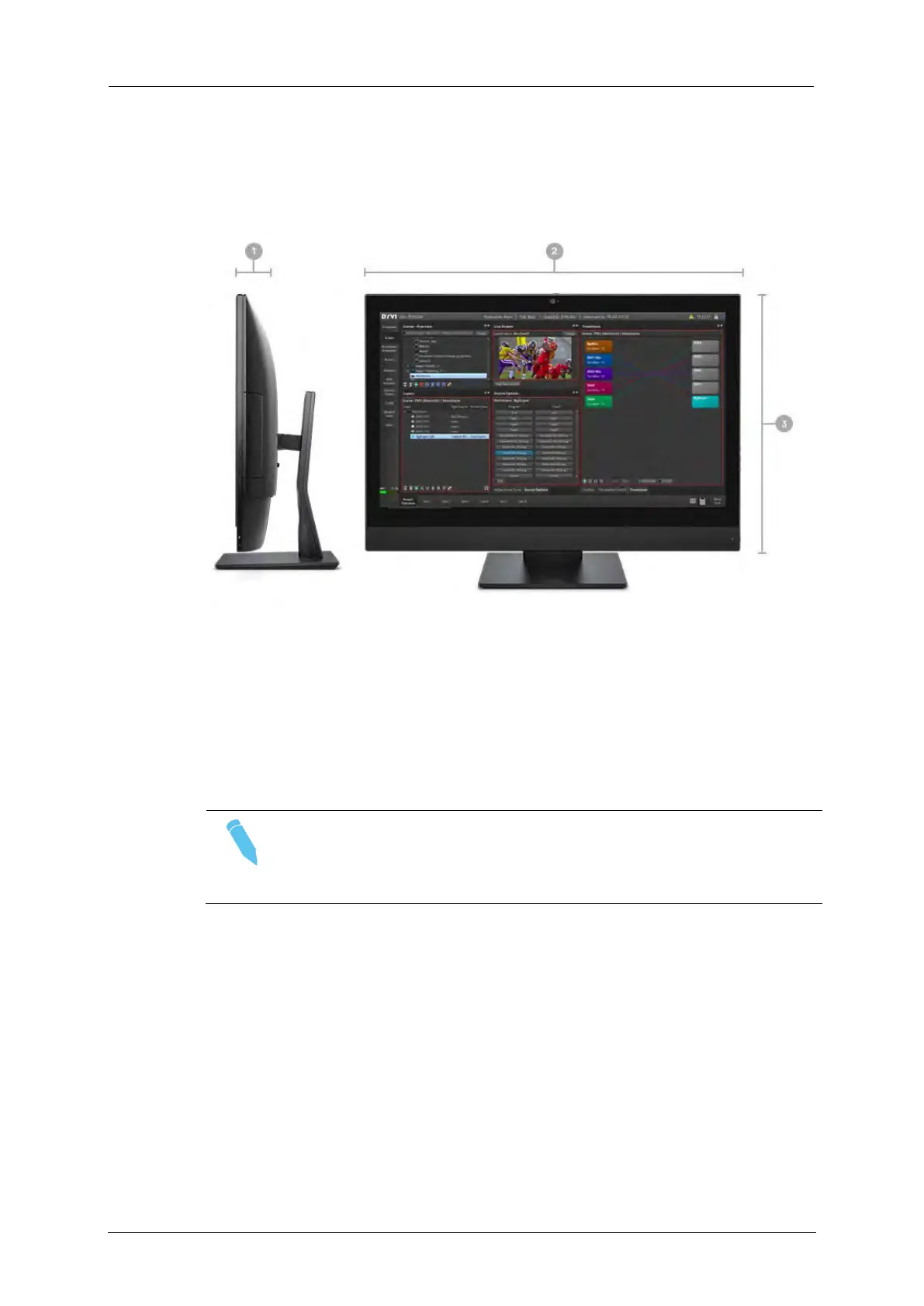 1. Depth 6,3 cm (2,5 inch) │2. Width 57,5 cm (22,7 inch) │3. Height 39,3