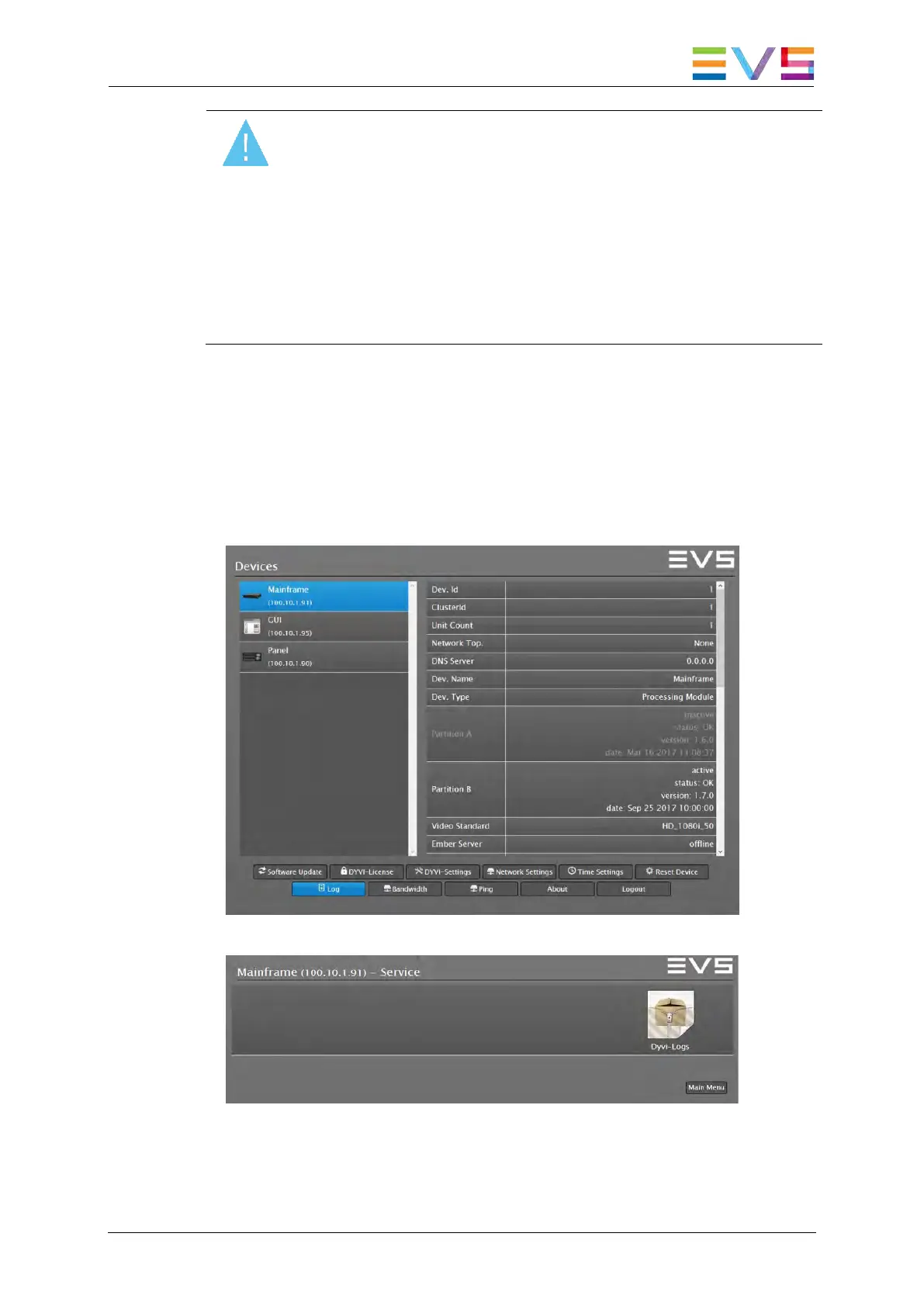 5. Send the dyviLogs.tar.gz file to the EVS support service.