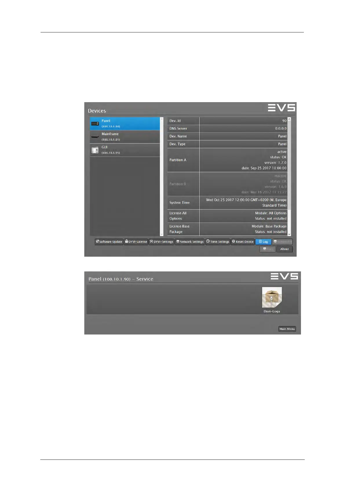5. Send the dyviLogs.tar.gz file to the EVS support service.