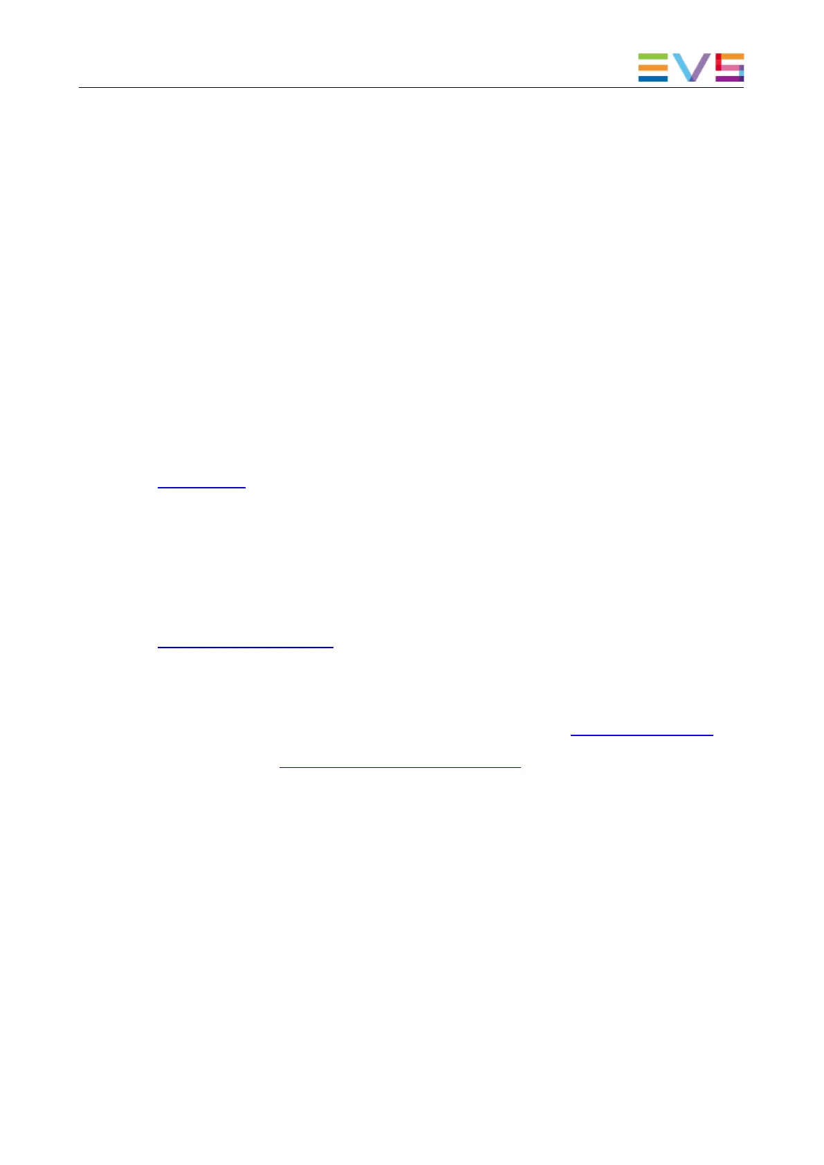 The user manuals for other EVS products can be found at the EVS download center, on the